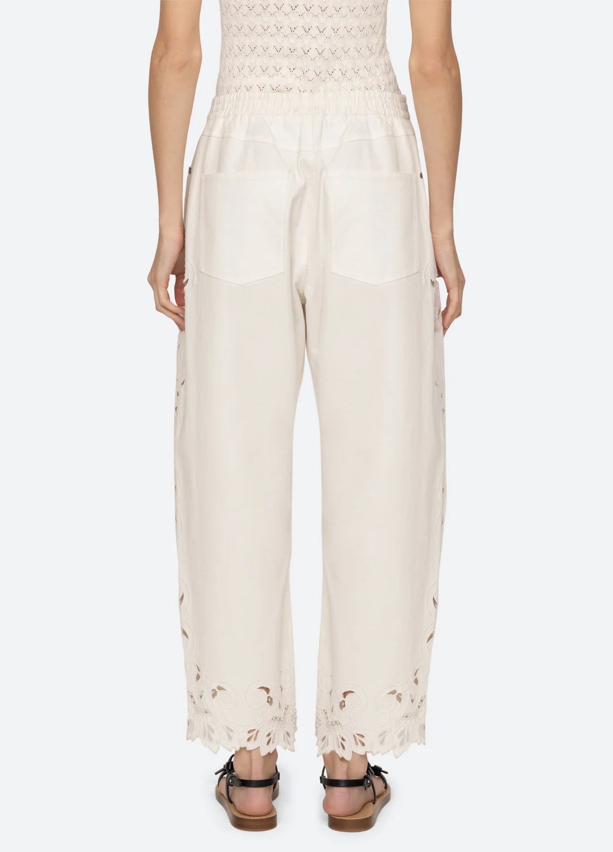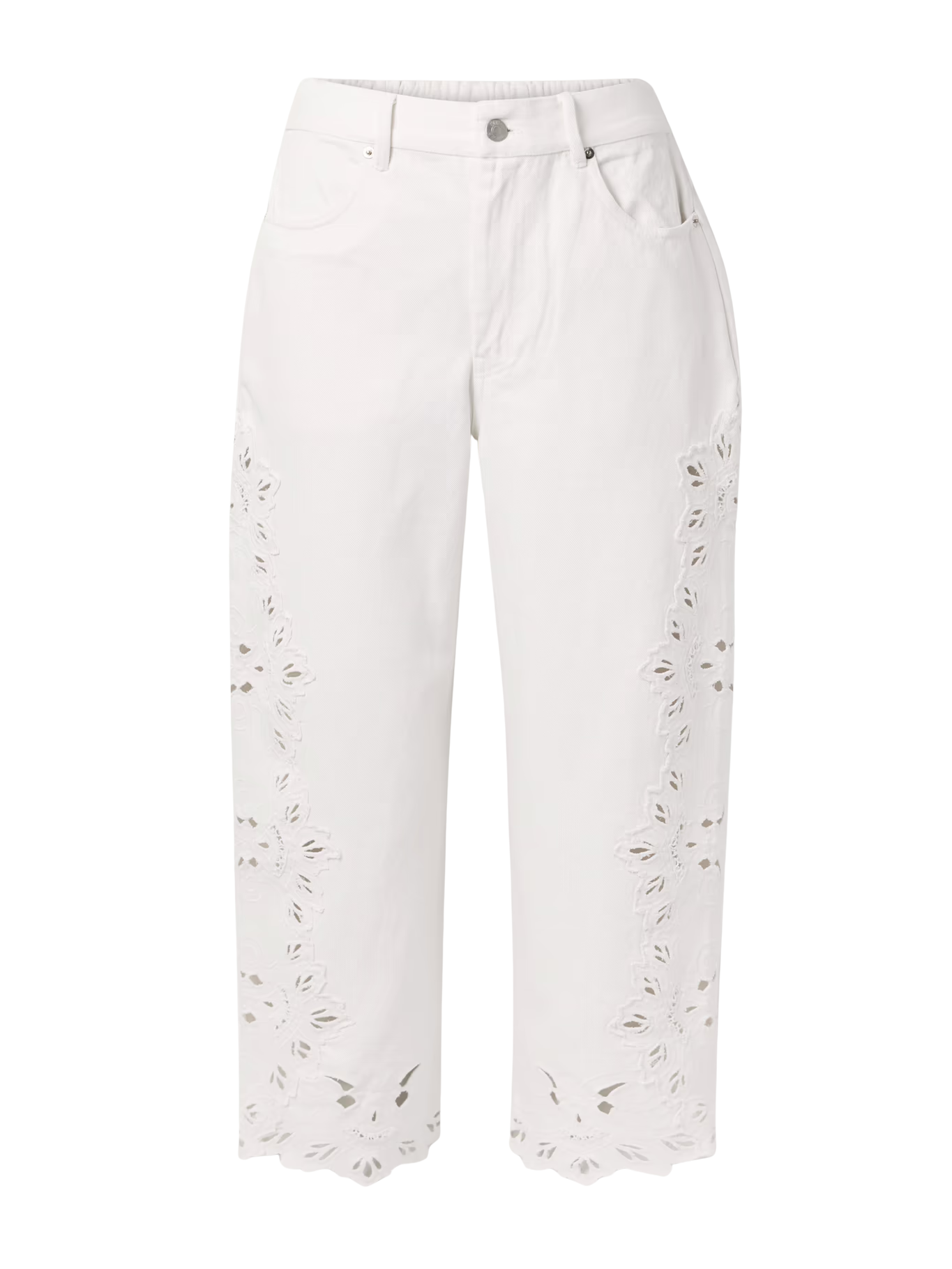 The Cavina denim jeans feature embroidered eyelet detailing throughout and elasticized back.